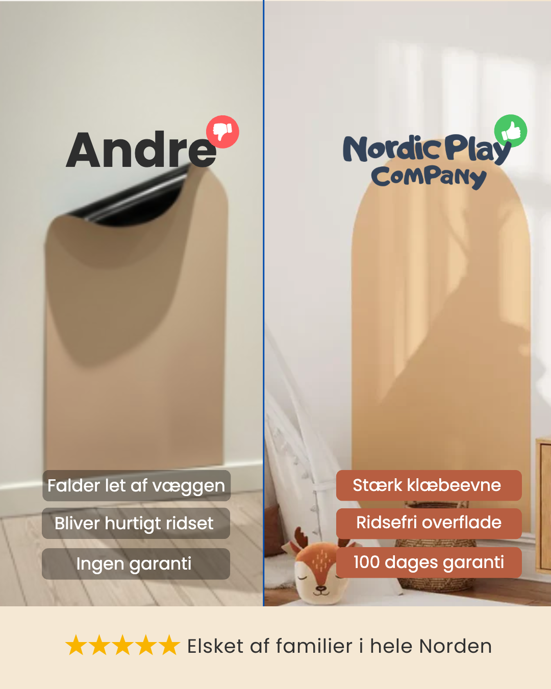 | Stærke magneter som ikke falder af | ✔ | ✘ |